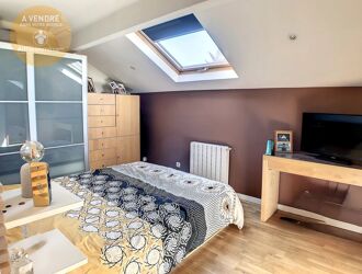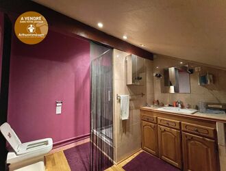 A l'étage, palier desservant 2 belles chambres, salle d'eau avec WC, chambre parentale avec sa salle de bains et placards.