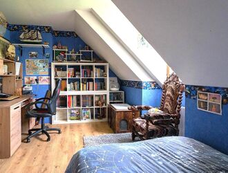 A l'étage mansardé, une chambre, en enfilade une petite chambre et un grand espace grenier aménageable.