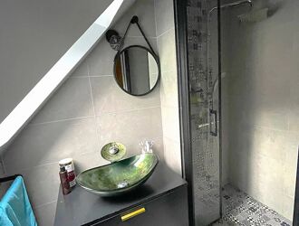 Au dernier niveau, une seule et grande pièce de 50 m2 au sol, aménagée avec verrière lumineuse que vous pourrez utiliser en chambre ou pour toute autre activité.